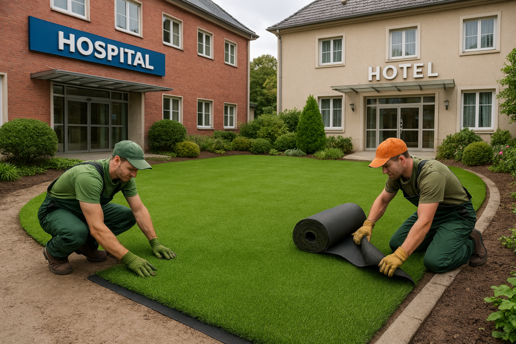 One of the most significant advantages of using artificial turf is its minimal maintenance requirements. Unlike natural grass, which requires regular mowing, watering, and fertilization, synthetic turf retains its lush appearance throughout the year without the need for intensive upkeep. This is especially beneficial for hospitals and hotels where maintaining pristine outdoor spaces is crucial but must compete with budgetary constraints and labor resources. By opting for artificial grass, institutions can allocate funds and staff resources more effectively while ensuring that their landscapes always look their best.